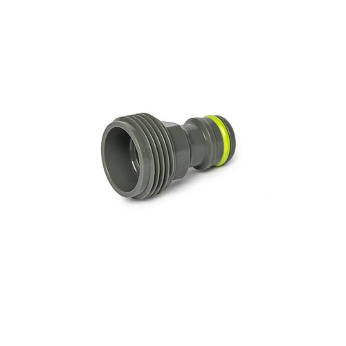 Адаптер оснащен наружной резьбой 3/4" для вкручивания в любой оросительный элемент (пистолет, ороситель) или кран и ниппелем для соединения с коннектором.